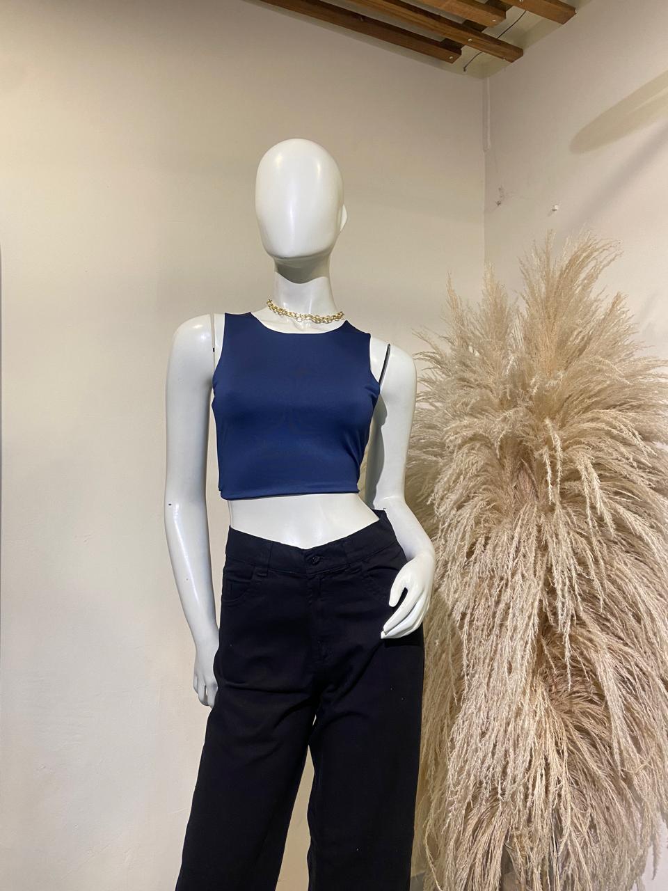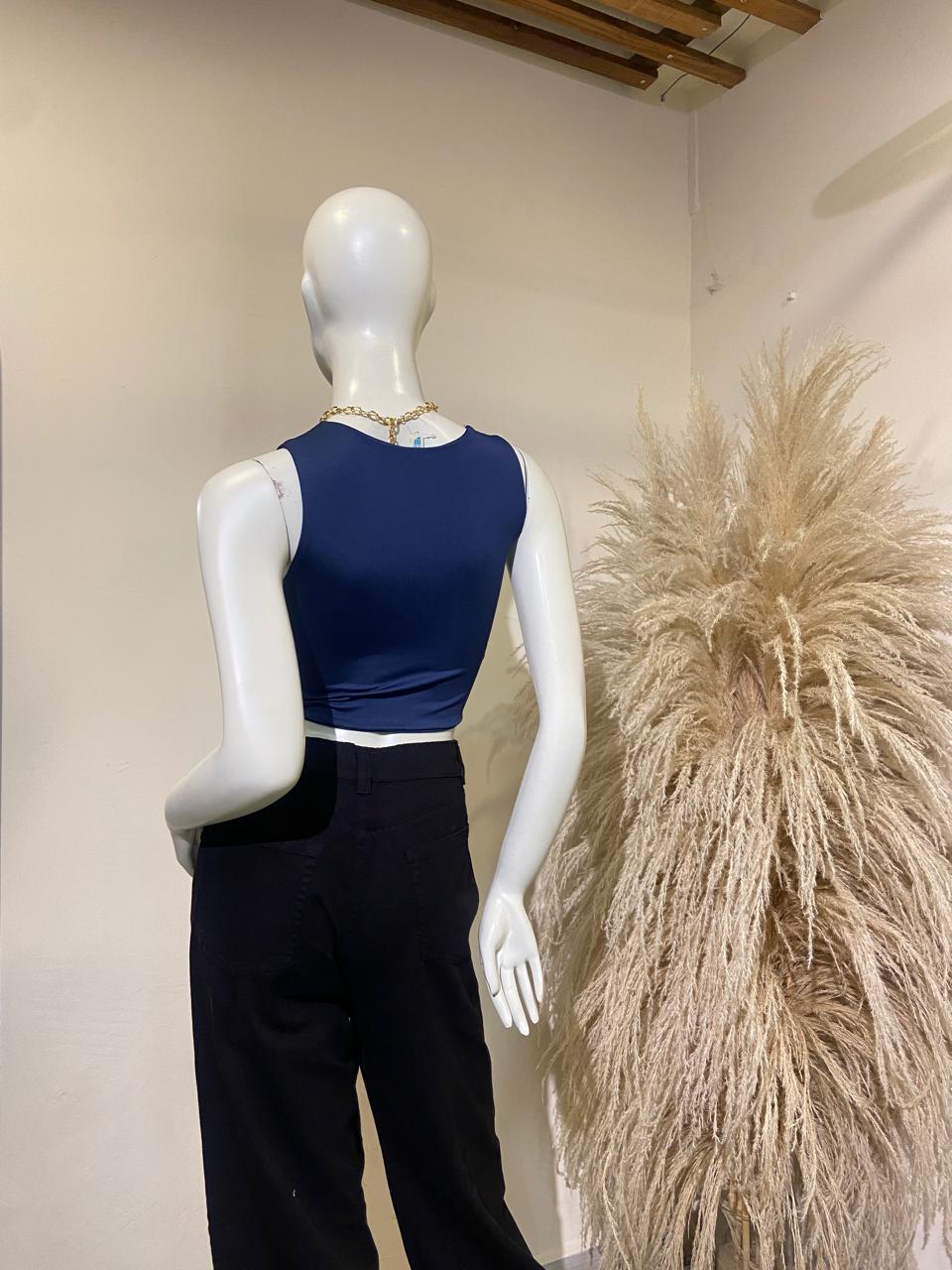 Básica cuello redondo corta azul oscura