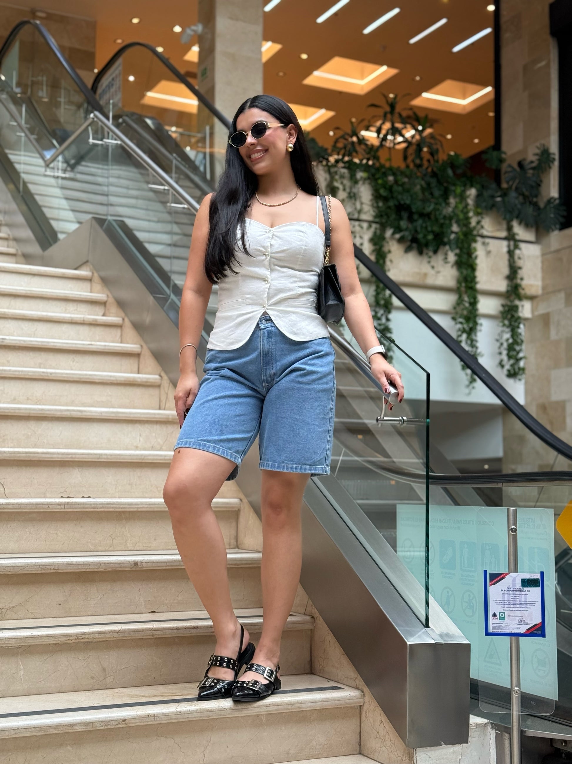 Bermuda clásica 5 bolsillos, cuenta con 2 bolsillos posteriores y 2 laterales, tiro alto, silueta ajustada en la cintura y holgada en la bota. Elaborado en denim rígido.