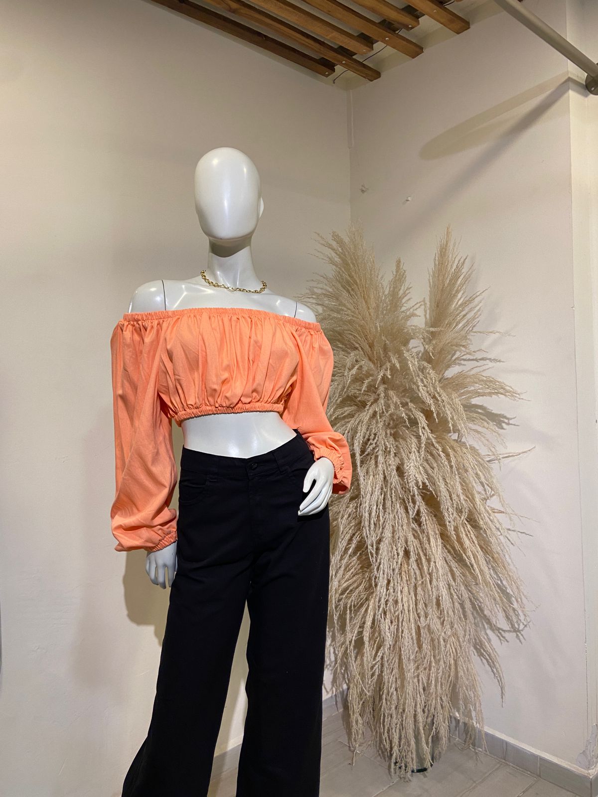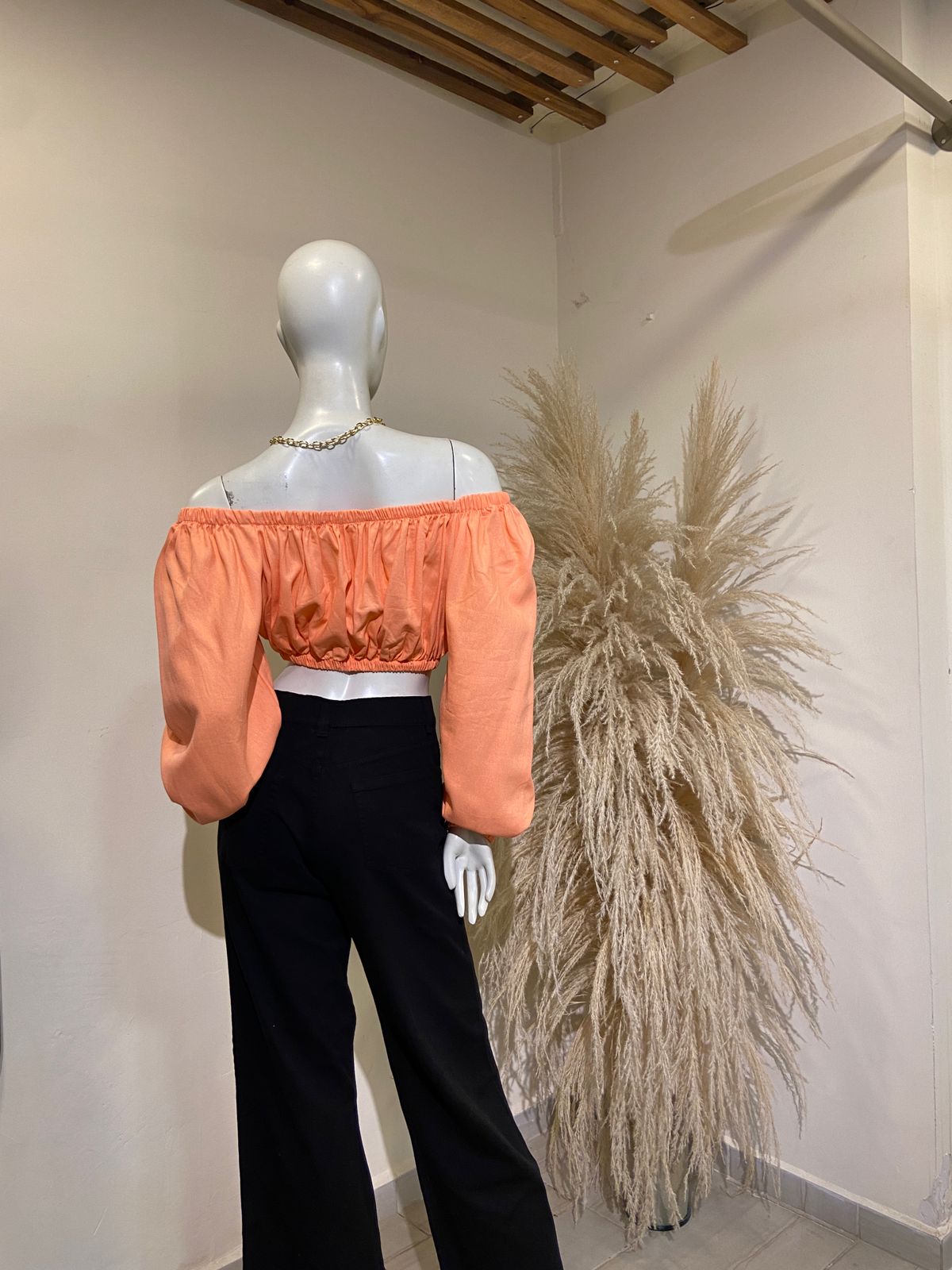 Blusa manga larga bombacha, encauchada, elaborada en Lino.