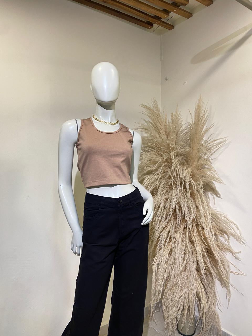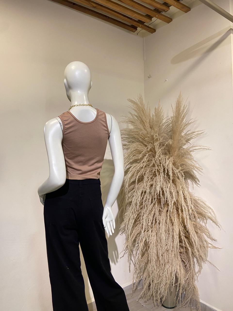Blusa básica en sesgo, cuello redondo. Elaborada en burda 65% poliéster - 35% algodón.