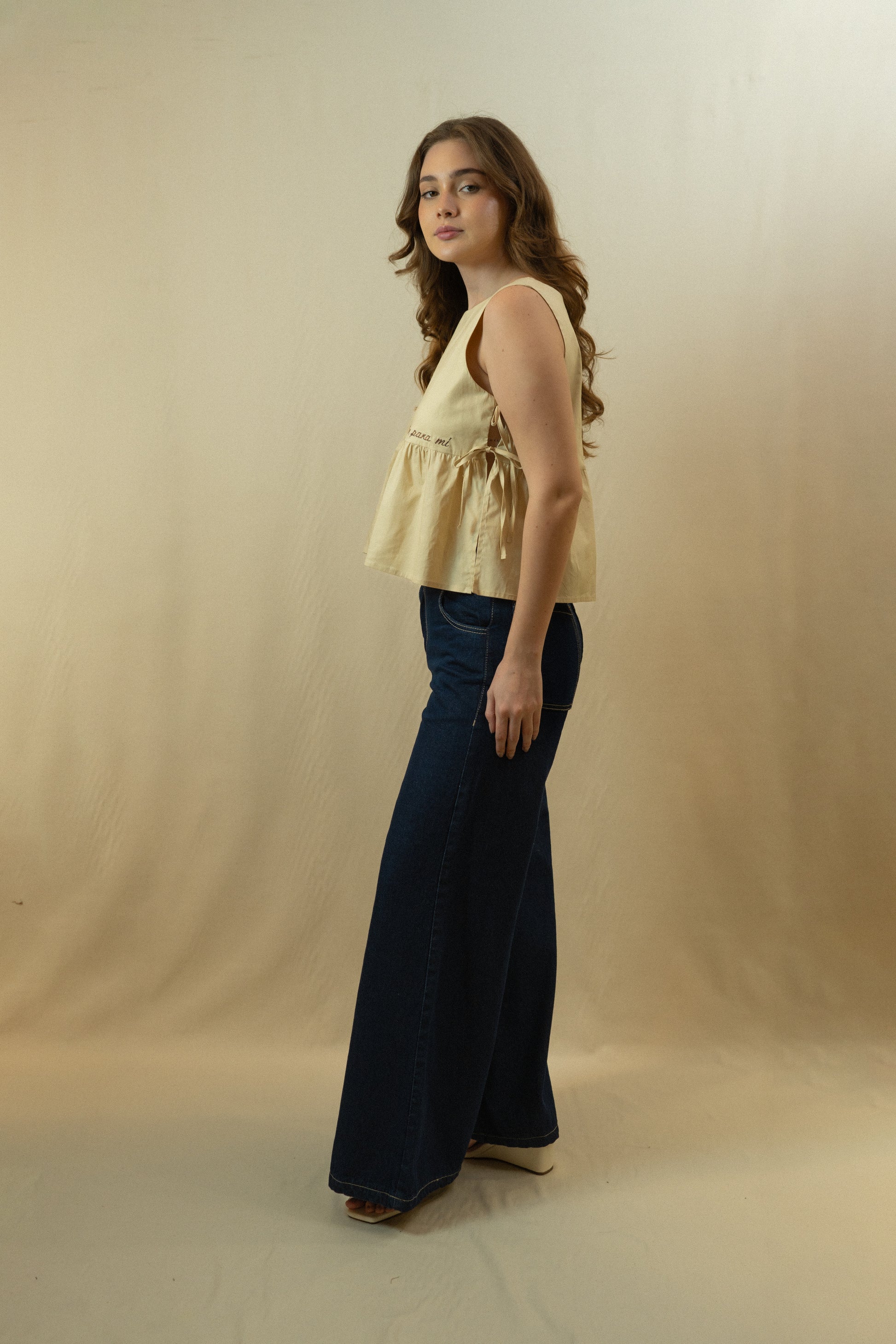 Blusa manga sisa, con fruncido en la cintura, silueta holgada con bordado de "Con Amor, para Mí” en la parte del delantero, no sistema de ajuste de tiras en los laterales, elaborada en popelina.