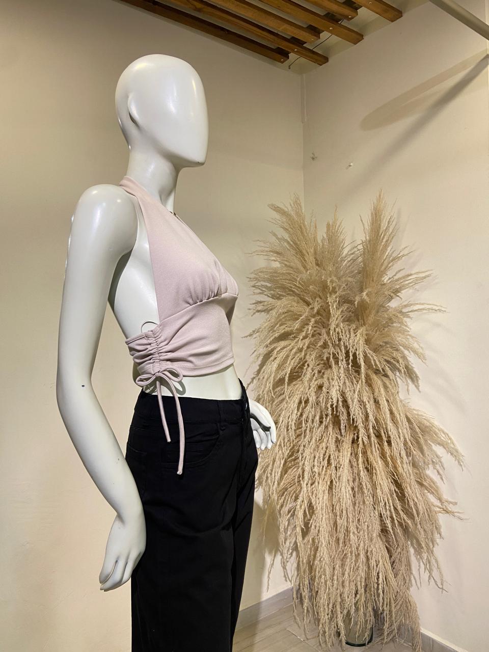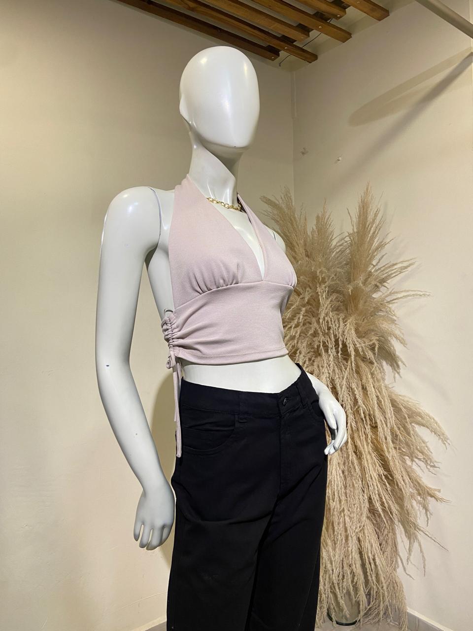 Blusa silueta ajustada con copas sin almohadilla, con tiras ajustables en los costados. Elaborada en burda 65% poliéster - 35% algodón.