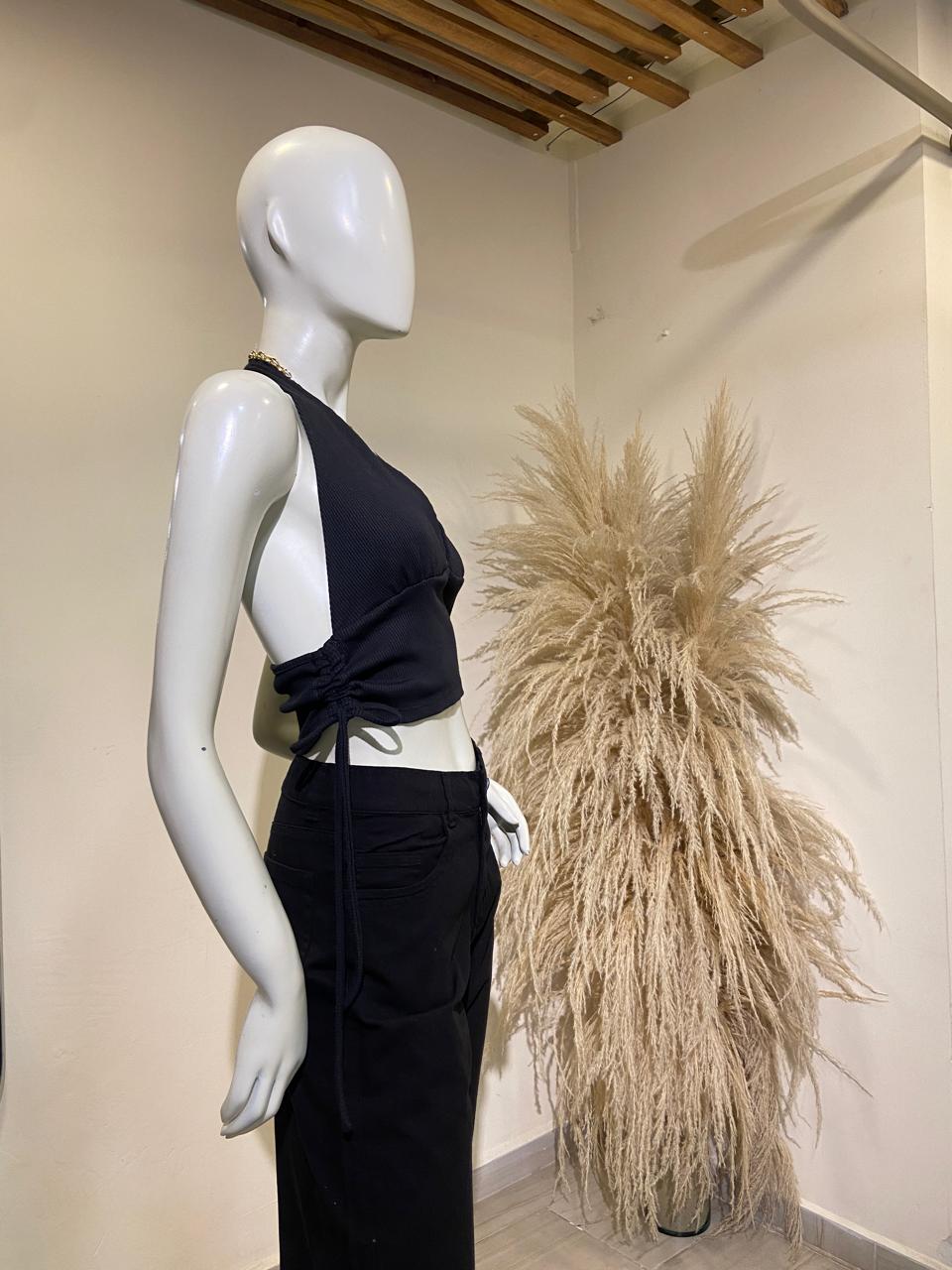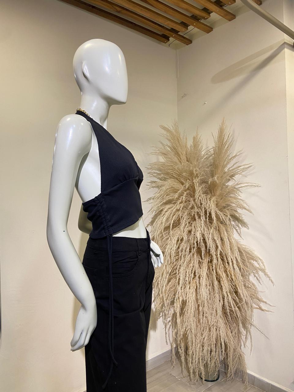 Blusa silueta ajustada con copas sin almohadilla, con tiras ajustables en los costados. Elaborada en burda.