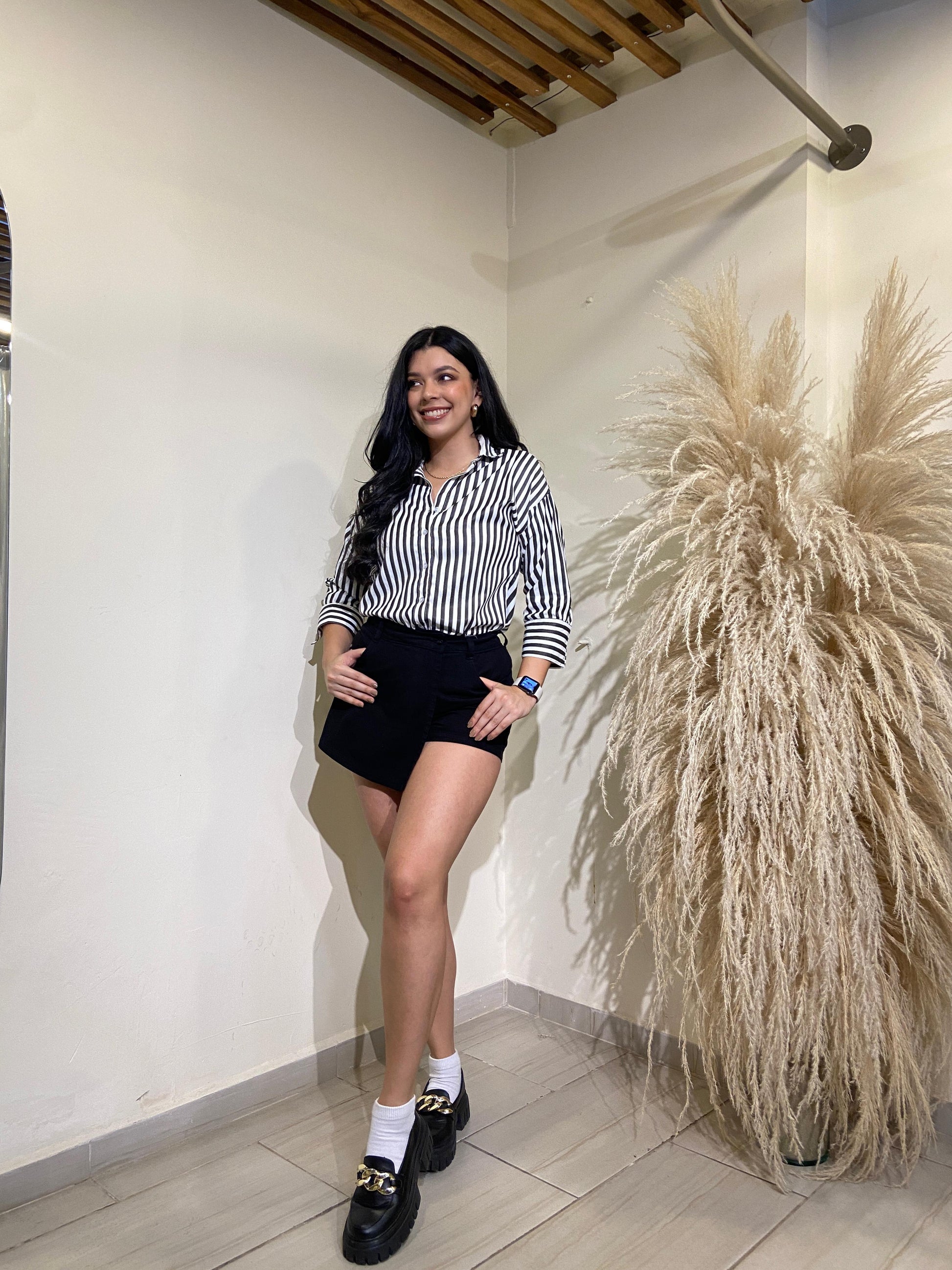 Camisa Celena satín rayas negra