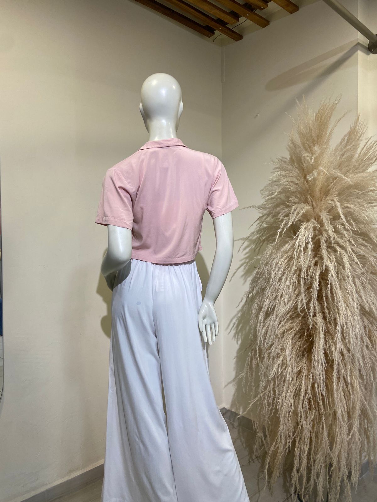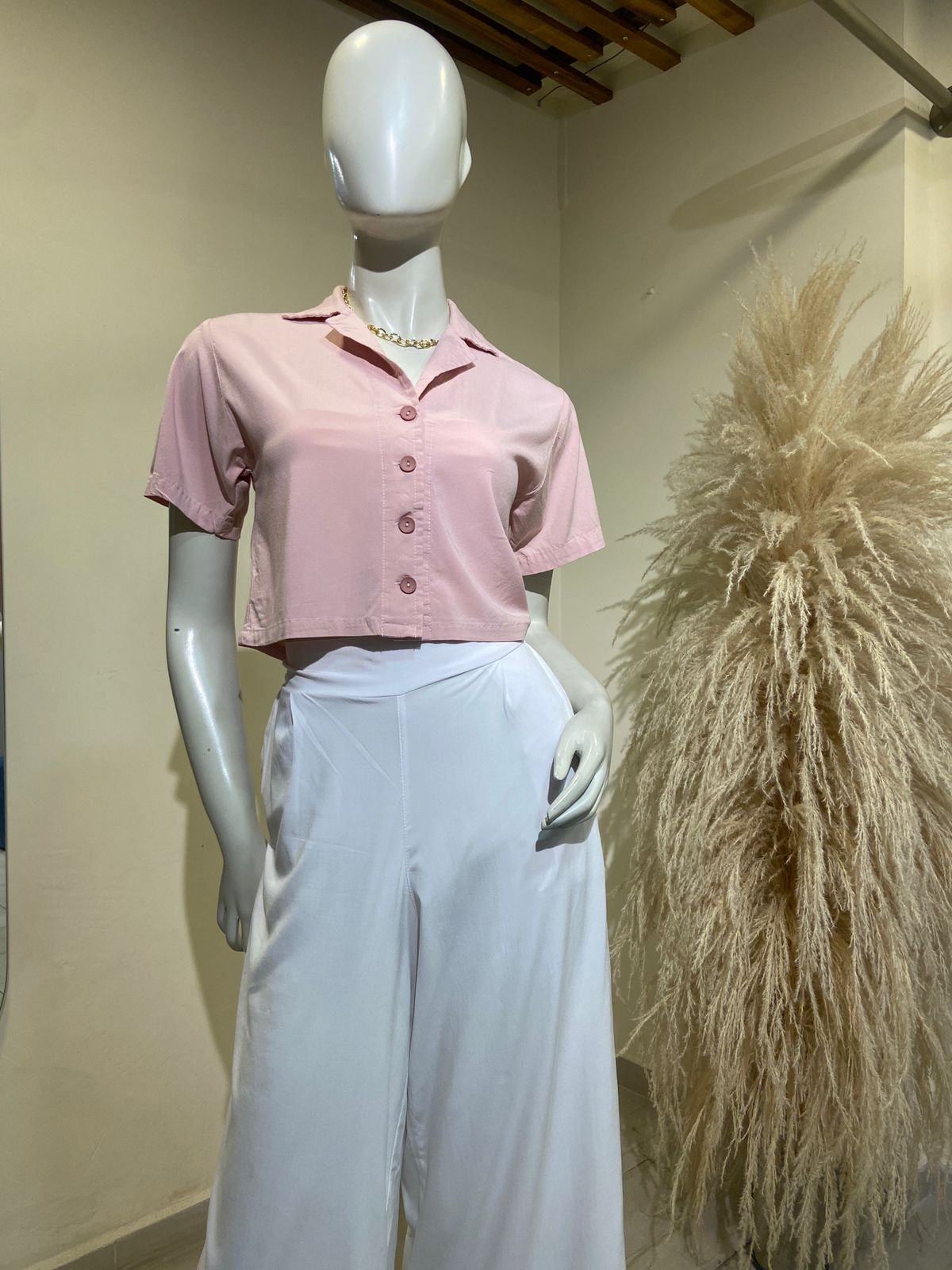 Camisera corta con cuello y botonera silueta amplia. Elaborada en rayón100% algodón.