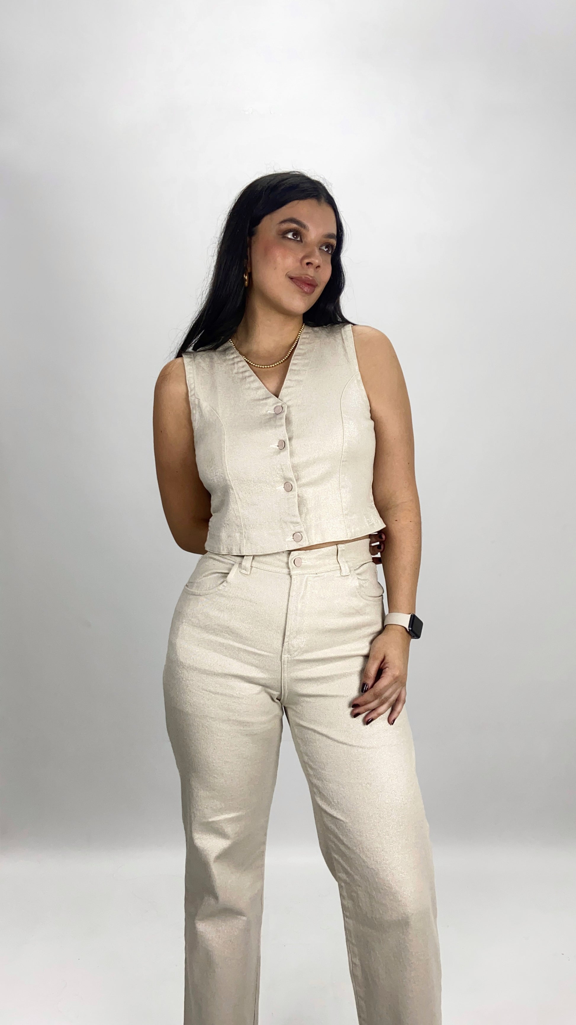 Chaleco clásico, con botones metálicos. Elaborado en drill strech brillante