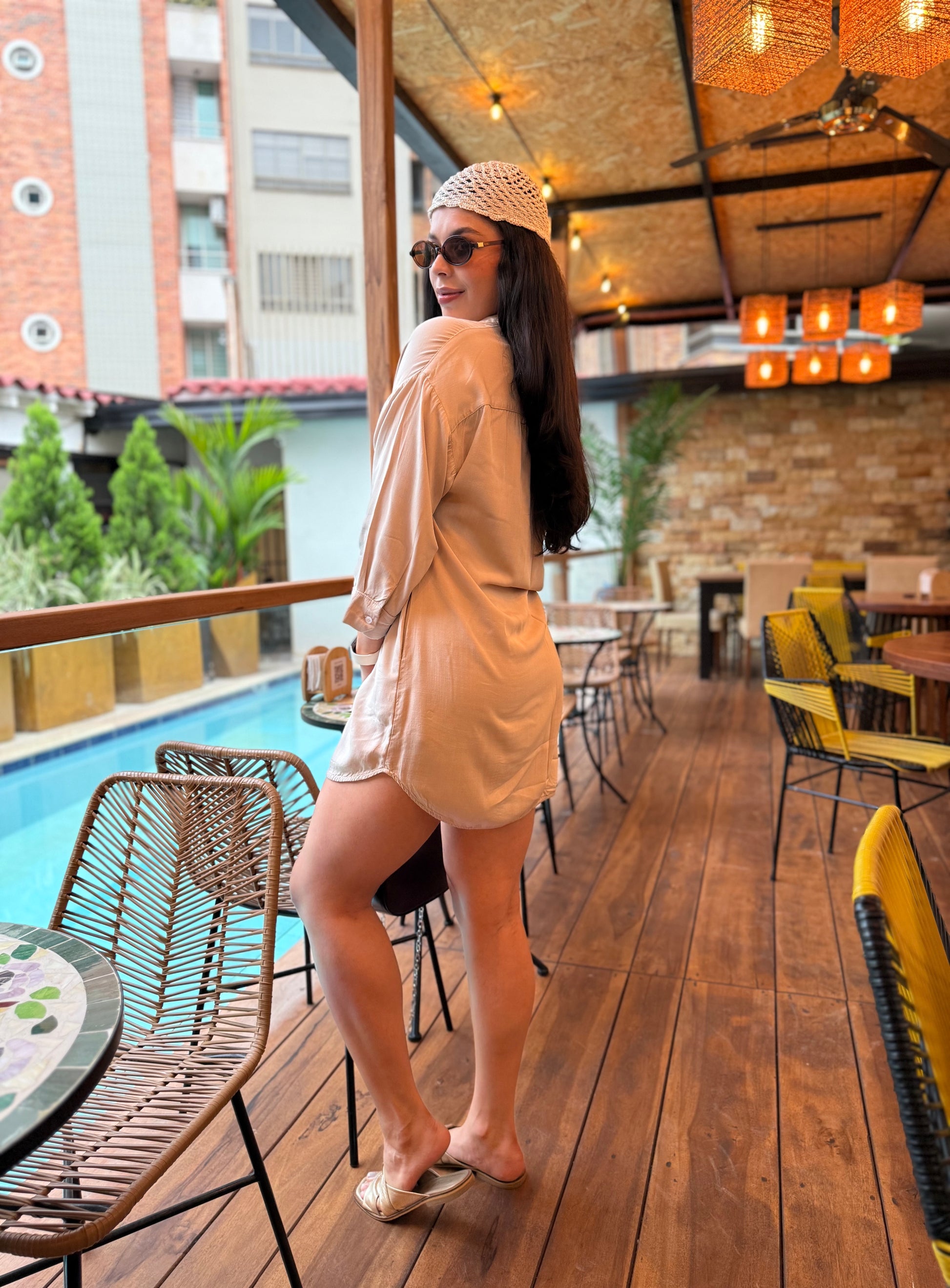 Vestido Camisero con Botonera, bolsillos atérrales funcionales. Elaborado en rayón.