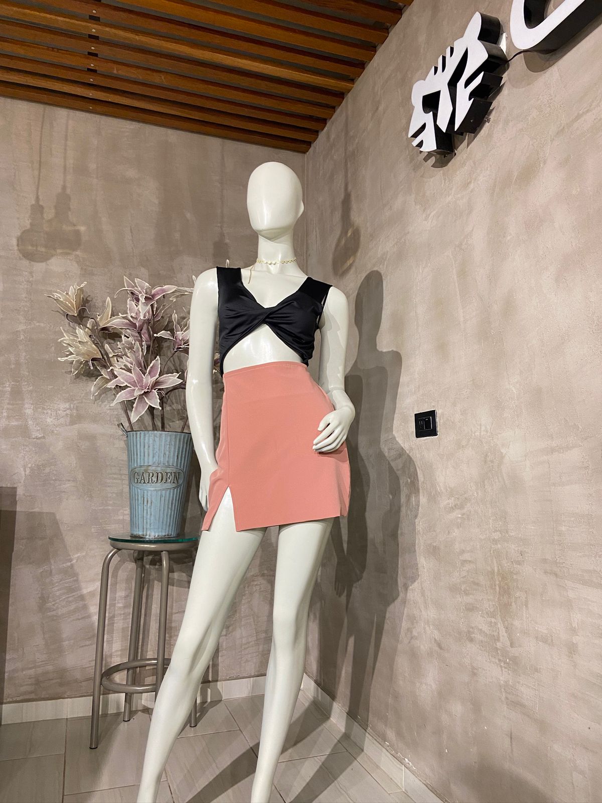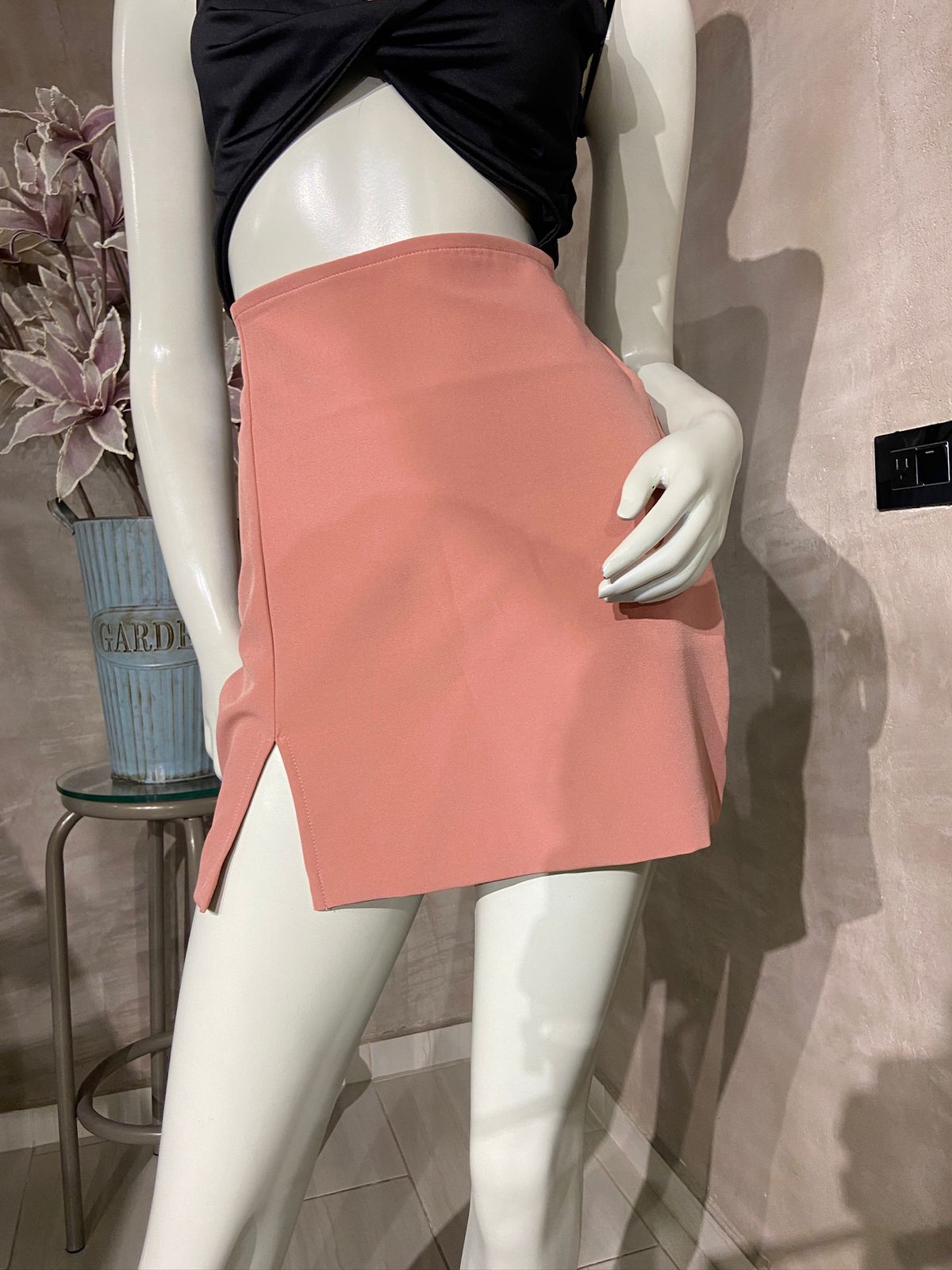 Falda corta con abertura al frente, silueta semi ajustada, textura lisa, pretina forrada, cierre invisible a un costado, dobladillo invisible. Una prenda moderna infaltable en tu closet.
