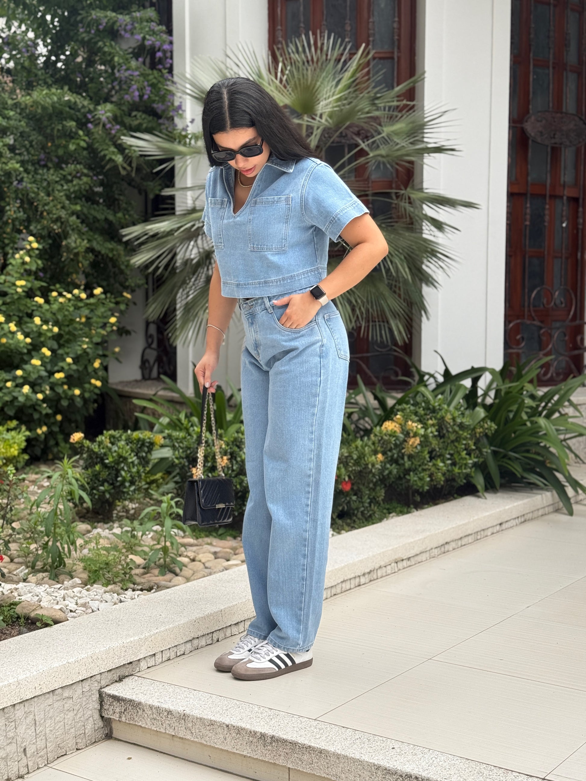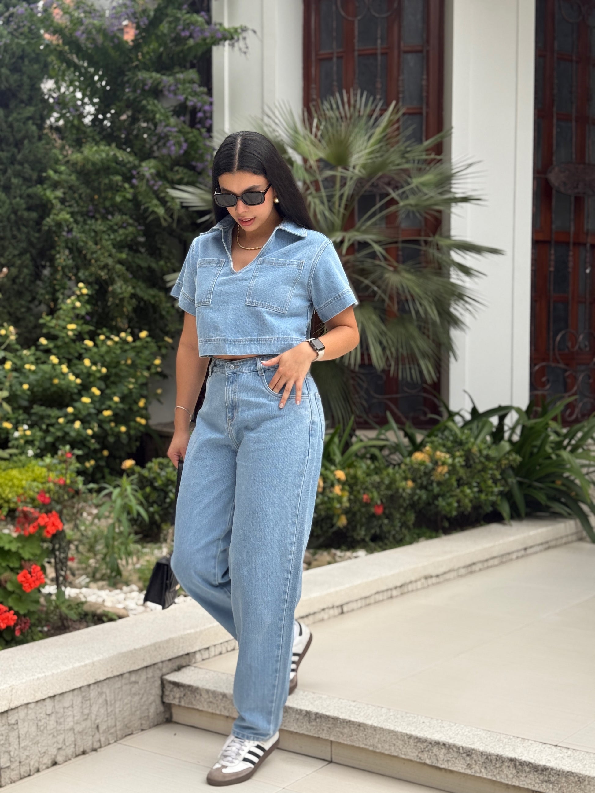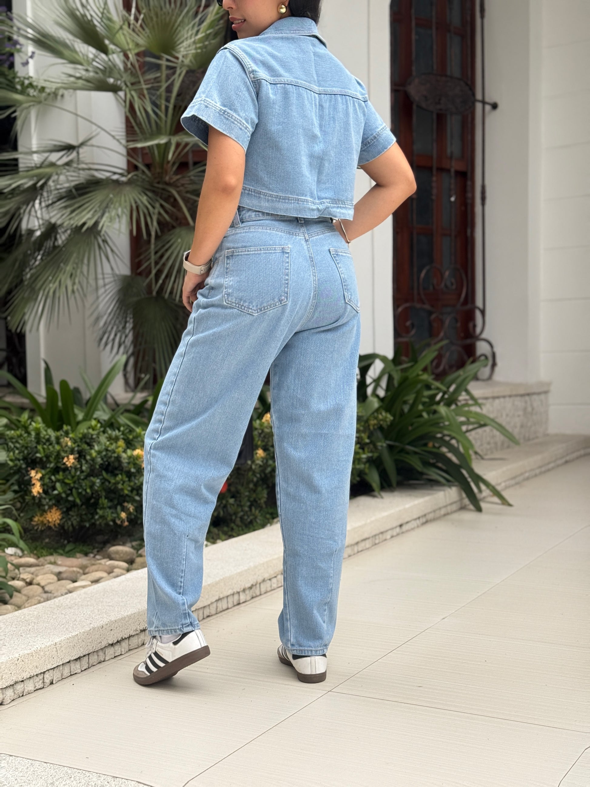 Pantalón jean tobillero de cinco bolsillos, ligeramente elástico. Tiro alto con cierre de cremallera y piernas ligeramente amplias arriba y más ajustadas en el tobillo. Elaborado en denim rígido.
