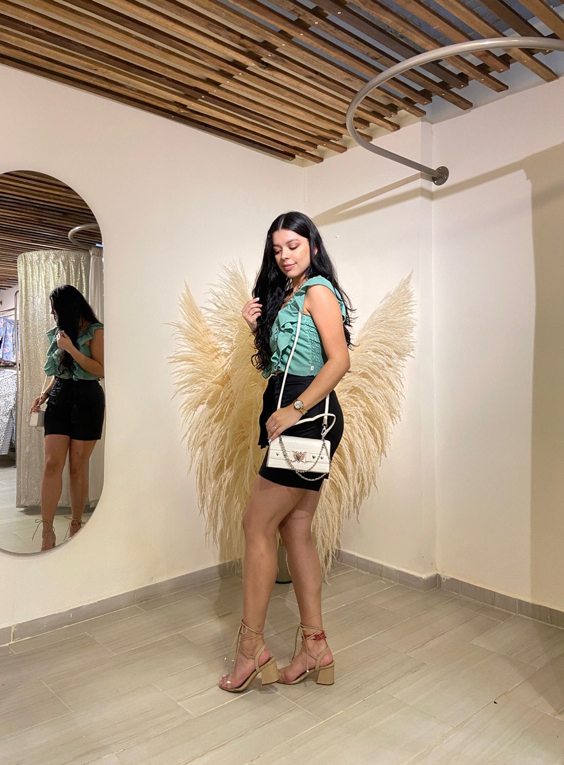 Short tipo biker, con fajón, bolsillos posteriores y bolsillos simulados en el frente. Silueta ajustada. Elaborado en cuerina strech.