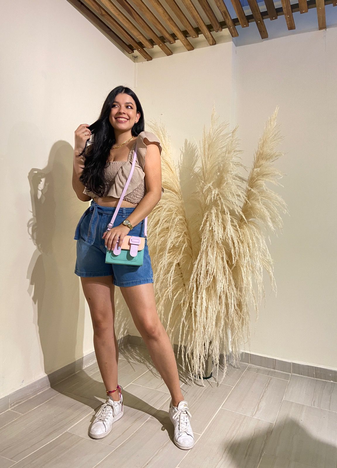 Short tipo biker, tiro alto, con cordón en la cintura, bolsillos en diagonal y posteriores, silueta semi holgada, diseño versátil que puedes usar con looks casuales. Hecho en denim 100% algodón.