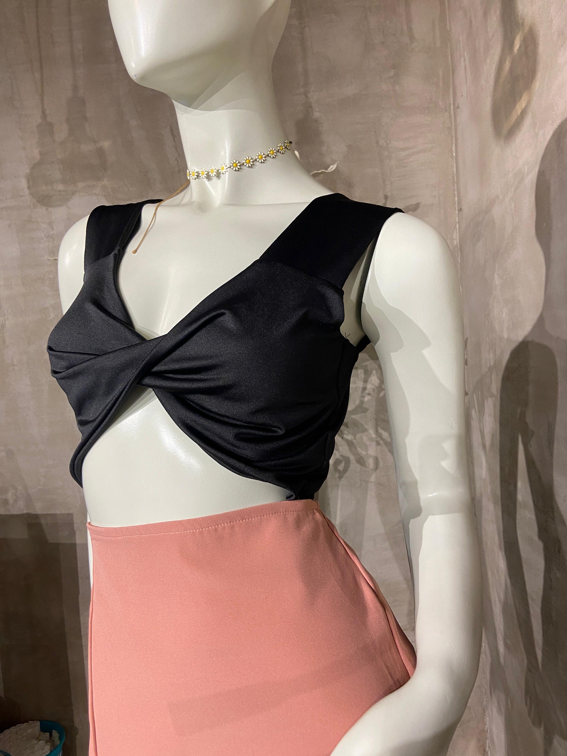 Top forrado con escote cruzado en la parte del frente, el escote se puede usar para la parte de la espalda también. Funciona S/M y M/L.