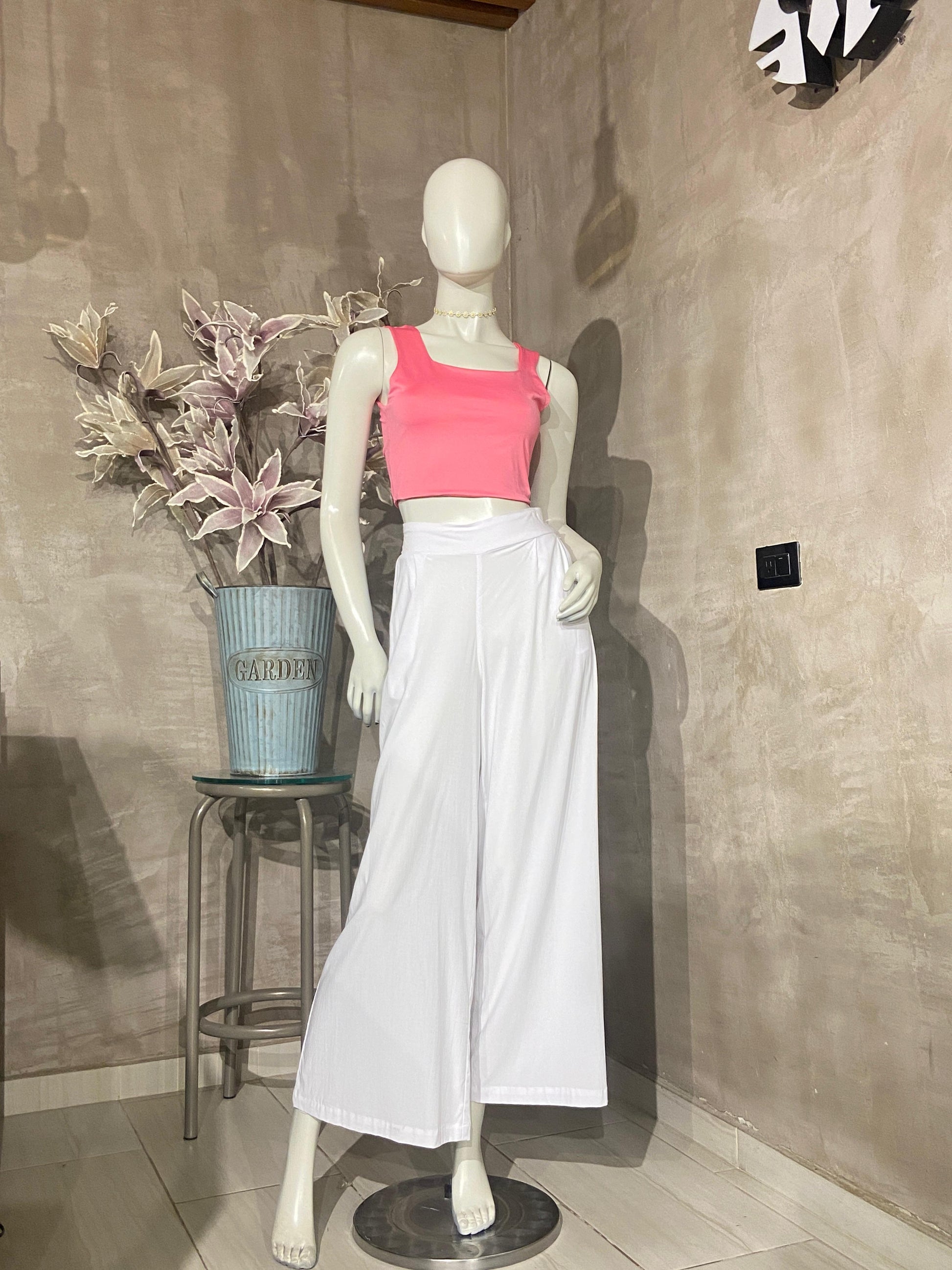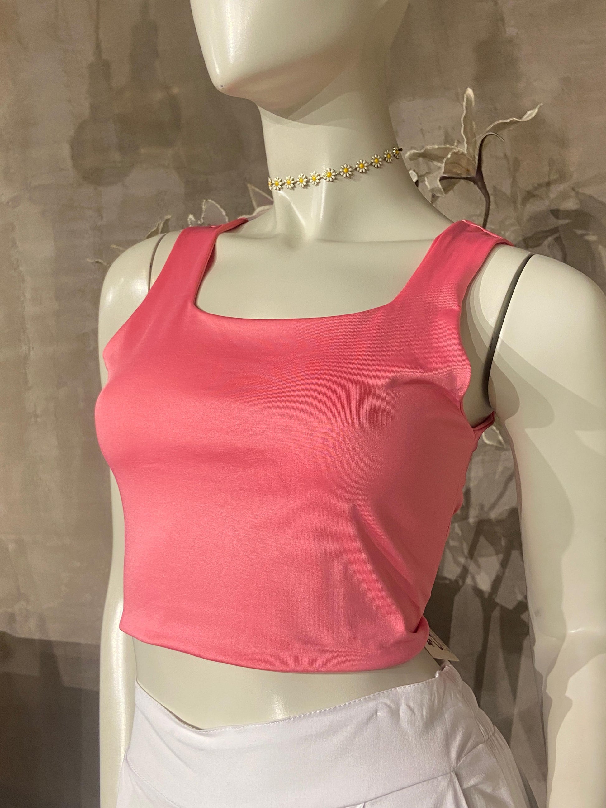Top básico, forrado de tiras gruesas, cuello recto, textura lisa, silueta ajustada. Elaborado en licra.