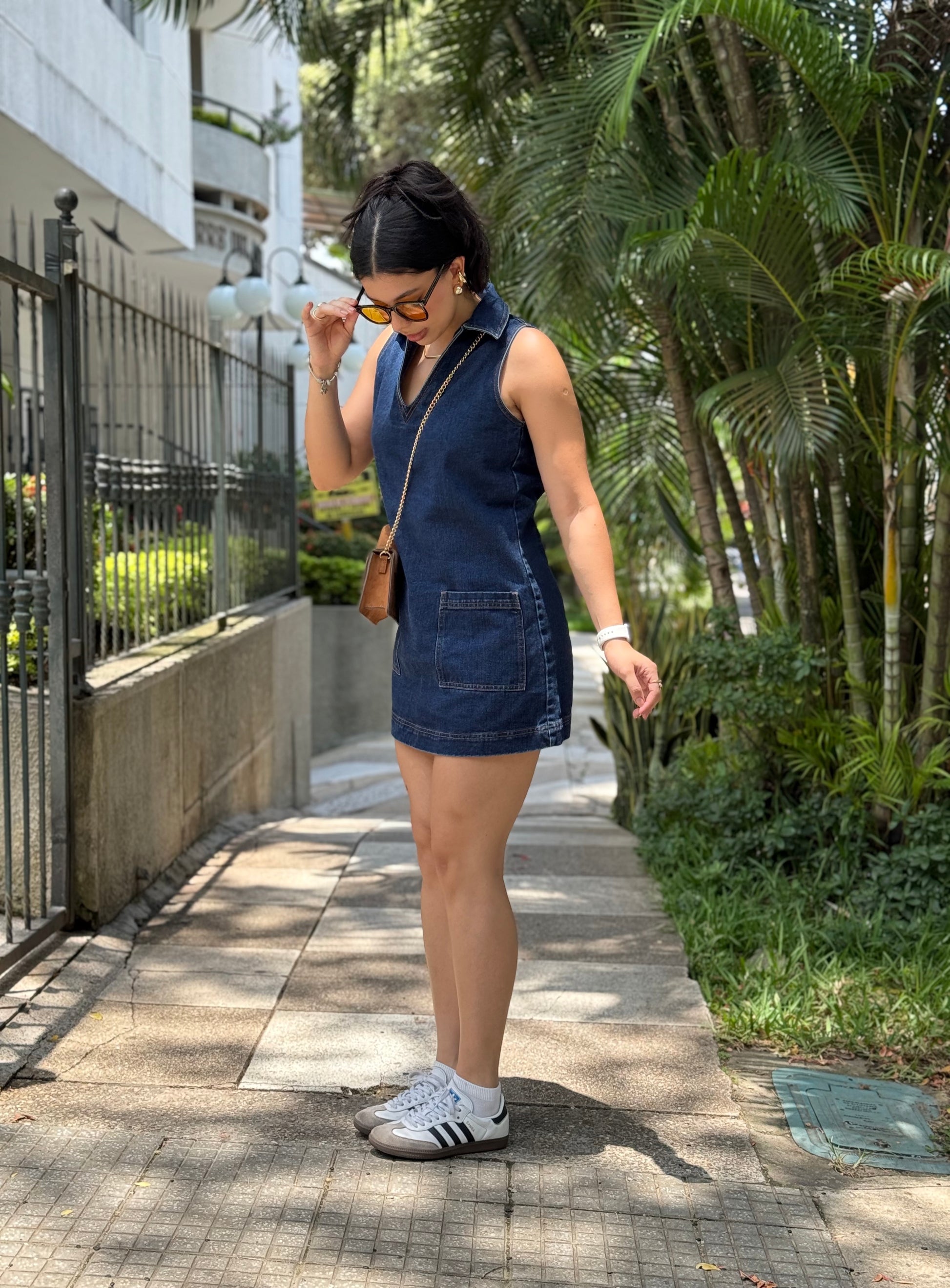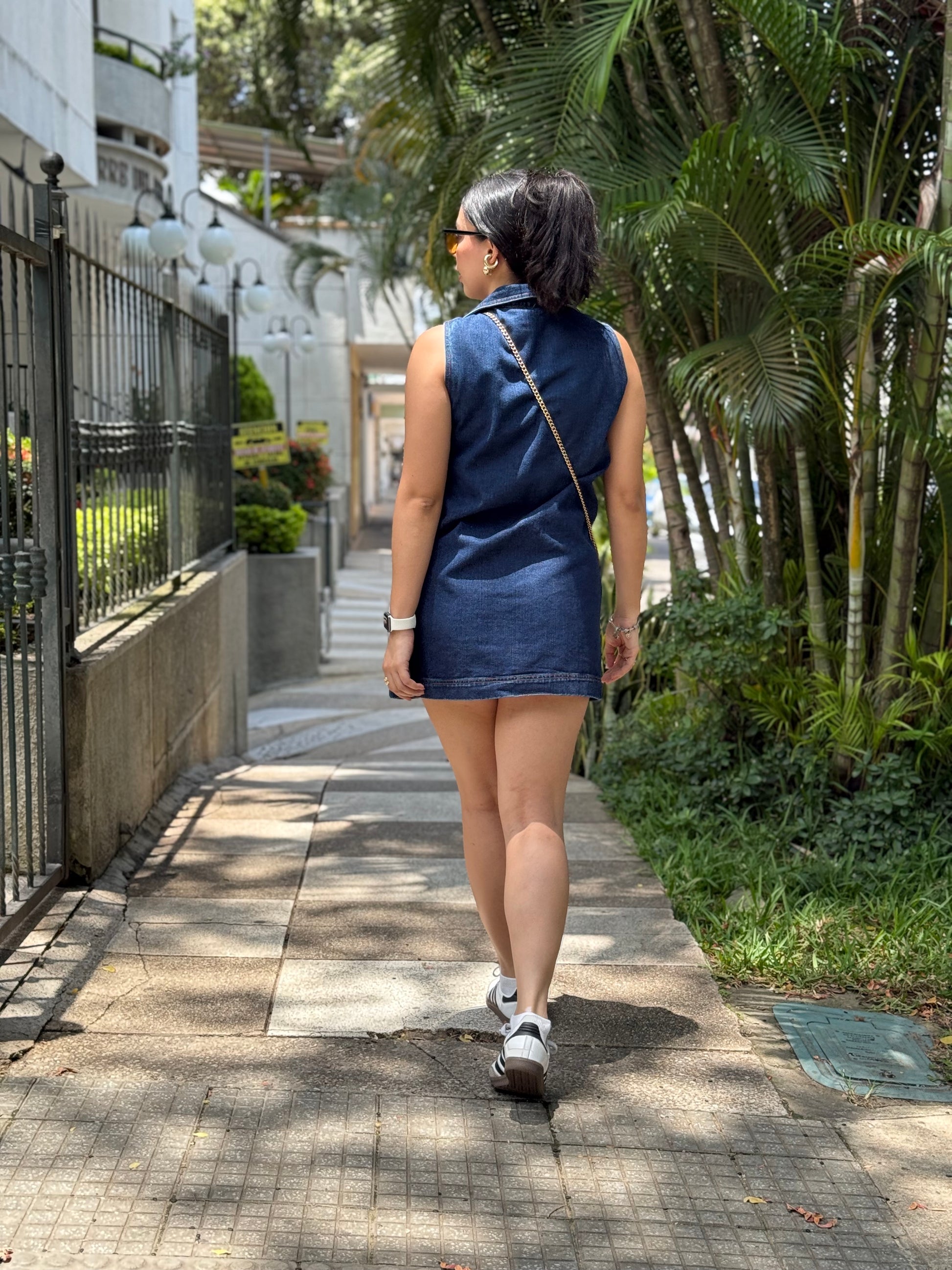 Vestido camisero manga sisa, silueta amplia, cuello clásico y con 2 bolsillos funcionales delanteros. Elaborado en denim rígido.