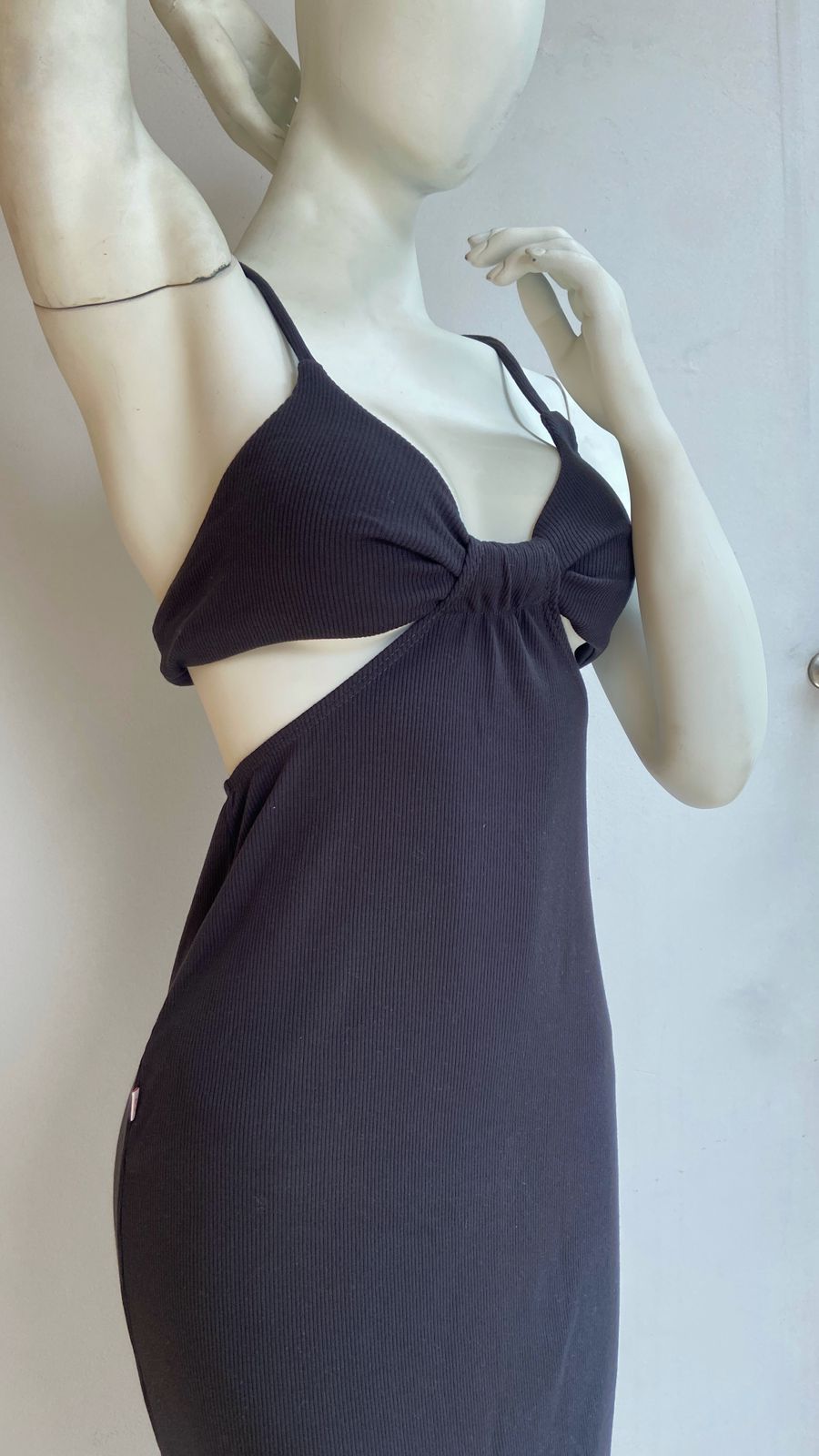 Vestido licrado en RIB, con escote, silueta ajustada.